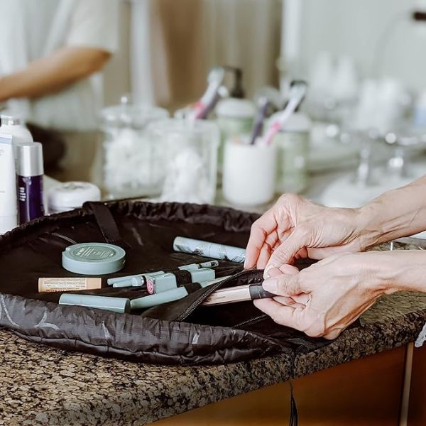 Sa GLAMSY-jem možete bez problema odložiti predmete. Samo povucite kanap da biste sklopili torbu u kompaktan format pogodan za putovanja. Savršena je za ranac ili prtljag i drži alate za lepotu organizovanim i zaštićenim od eventualnih oštećenja. Sa svojim ogromnim kapacitetom za skladištenje i praktičnošću, ova magična torbica je nezaobilazni dodatak za sakrivanje svih osnovnih elemenata za negu kože.