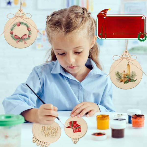 Pretvorite svoj praznični dekor sa 30 vrhunskih, prethodno izbušenih drvenih diskova, savršenih za izradu personalizovanih ukrasa koji dodaju rustikalni šarm vašoj božićnoj jelki.
