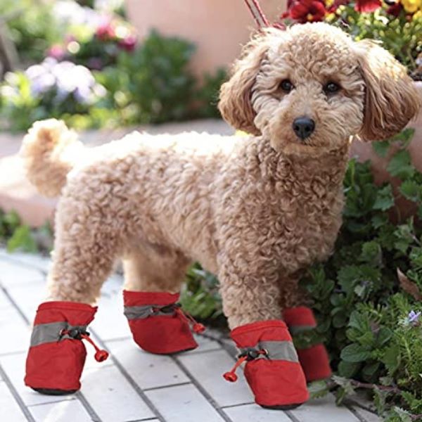 📦 Paket sadrži: 4x vodootporne cipele za kućne ljubimce (dostupne u crvenoj ili crnoj boji)